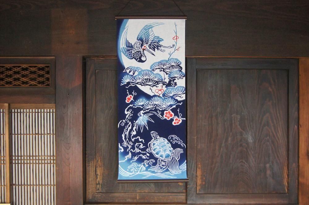 梨園染 手ぬぐい 月下吉祥鶴亀図