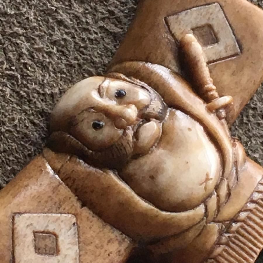 瞳は水牛角象嵌、裏座にも水牛角を使用。