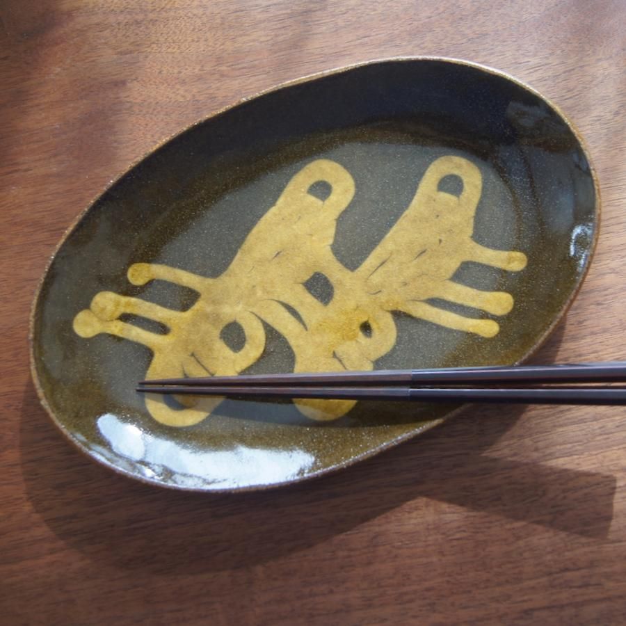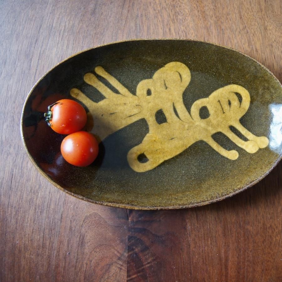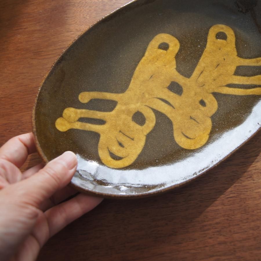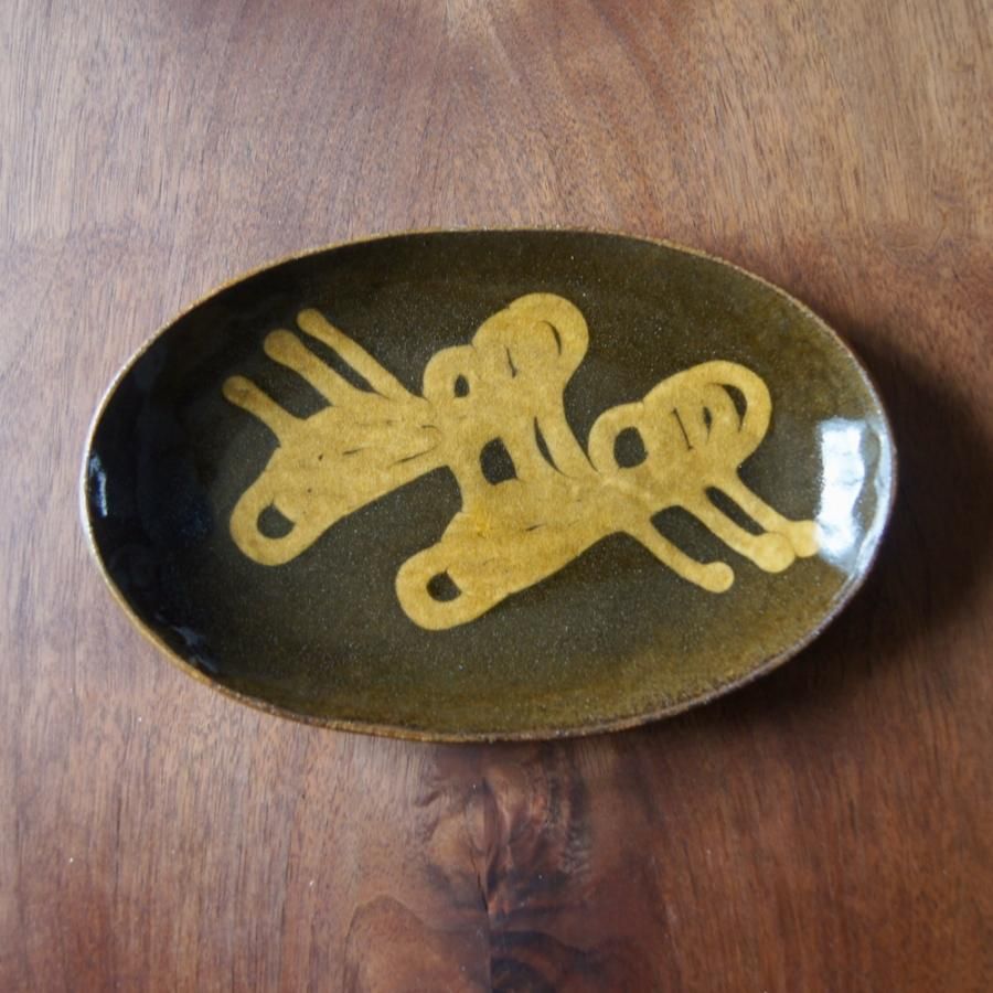 齊藤十郎 楕円平皿 スリップウェア02
