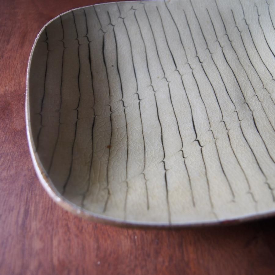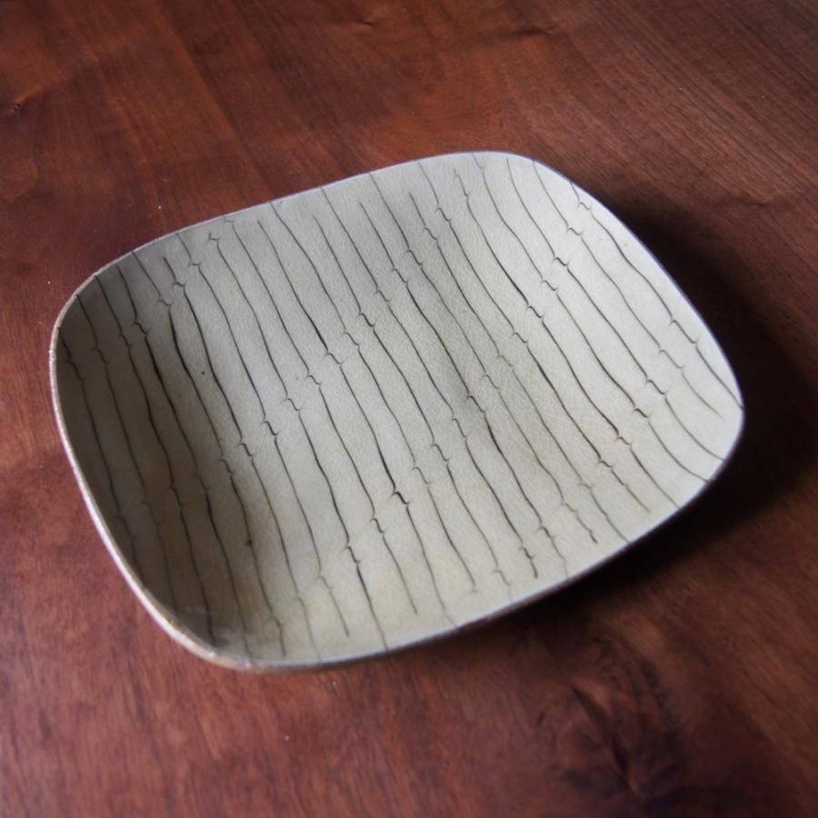 【値下げしました】齊藤十郎 角平皿 スリップウェア04