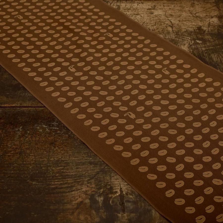 強めの深煎りをイメージしたコーヒー色の生地に、珈琲豆とオニオオハシ(親子もいます)が並んだ愉快なデザインです。